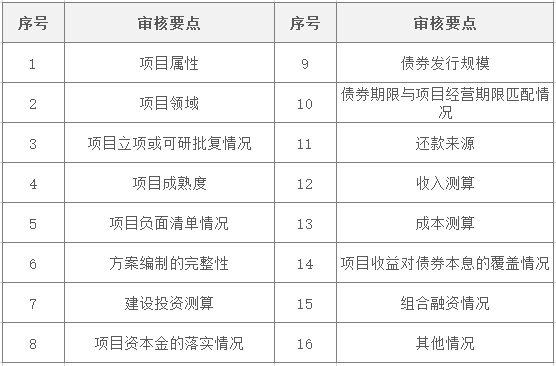 資料審核通過(guò),進(jìn)入發(fā)行庫(kù),待發(fā)行。各省財(cái)政廳對(duì)發(fā)行文件進(jìn)行審核,著重對(duì)《可研報(bào)告》與《實(shí)施方案》進(jìn)行審核,審核要點(diǎn)如下:各省財(cái)政廳對(duì)項(xiàng)目的審批程序進(jìn)行審核,項(xiàng)目達(dá)到開(kāi)工條件后正式發(fā)行,審批程序?qū)徍耸马?xiàng)清單如下: