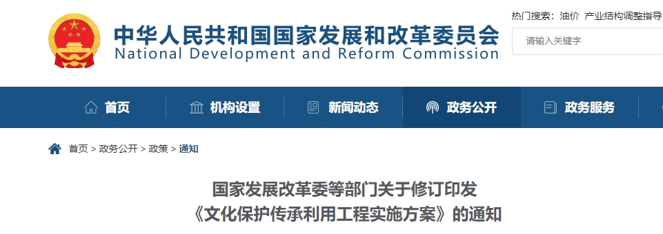 日前,國(guó)家發(fā)展改革委會(huì)同住房城鄉(xiāng)建設(shè)部、中央宣傳部、文化和旅游部等部門對(duì)《文化保護(hù)傳承利用工程實(shí)施方案》進(jìn)行了修訂。