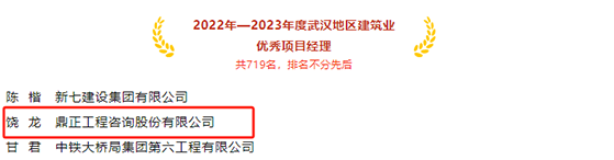 ▲2022-2023年度武漢地區建筑業優秀項目經理