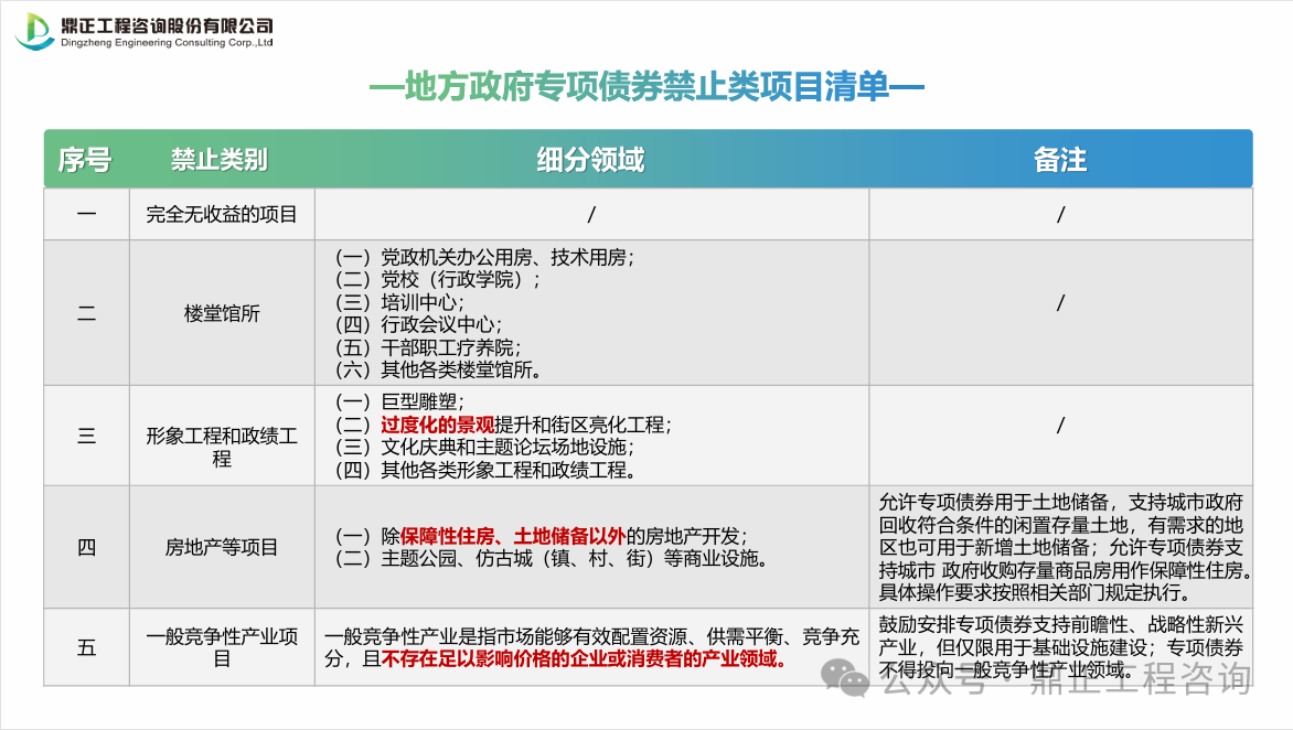 (2)資金投向:精準匹配專項債券可用作項目資本金的行業,或項目未納入“負面清單”。