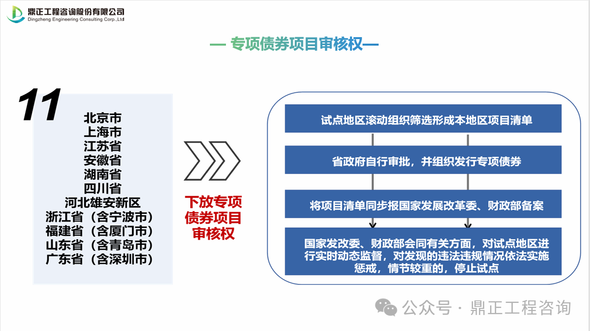 地方政府專項債券項目“自審自發”試點地區名單:北京市、上海市、江蘇省、浙江省(含寧波市)、安徽省、福建省(含廈門市)、山東?。ê鄭u市)、湖南省、廣東省(含深圳市)、四川省、河北雄安新區等11個省市。