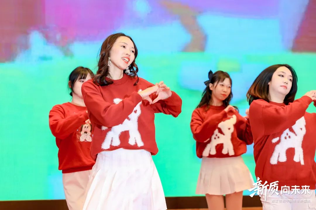 另一邊,由信息部、投標部、城市公司發展部、市場部、財務部及造價咨詢事業部臨時組建的女團,帶來了洋溢著青春活力的舞蹈串燒《愛你》+《桃花朵朵開》,展現了別樣的風采。