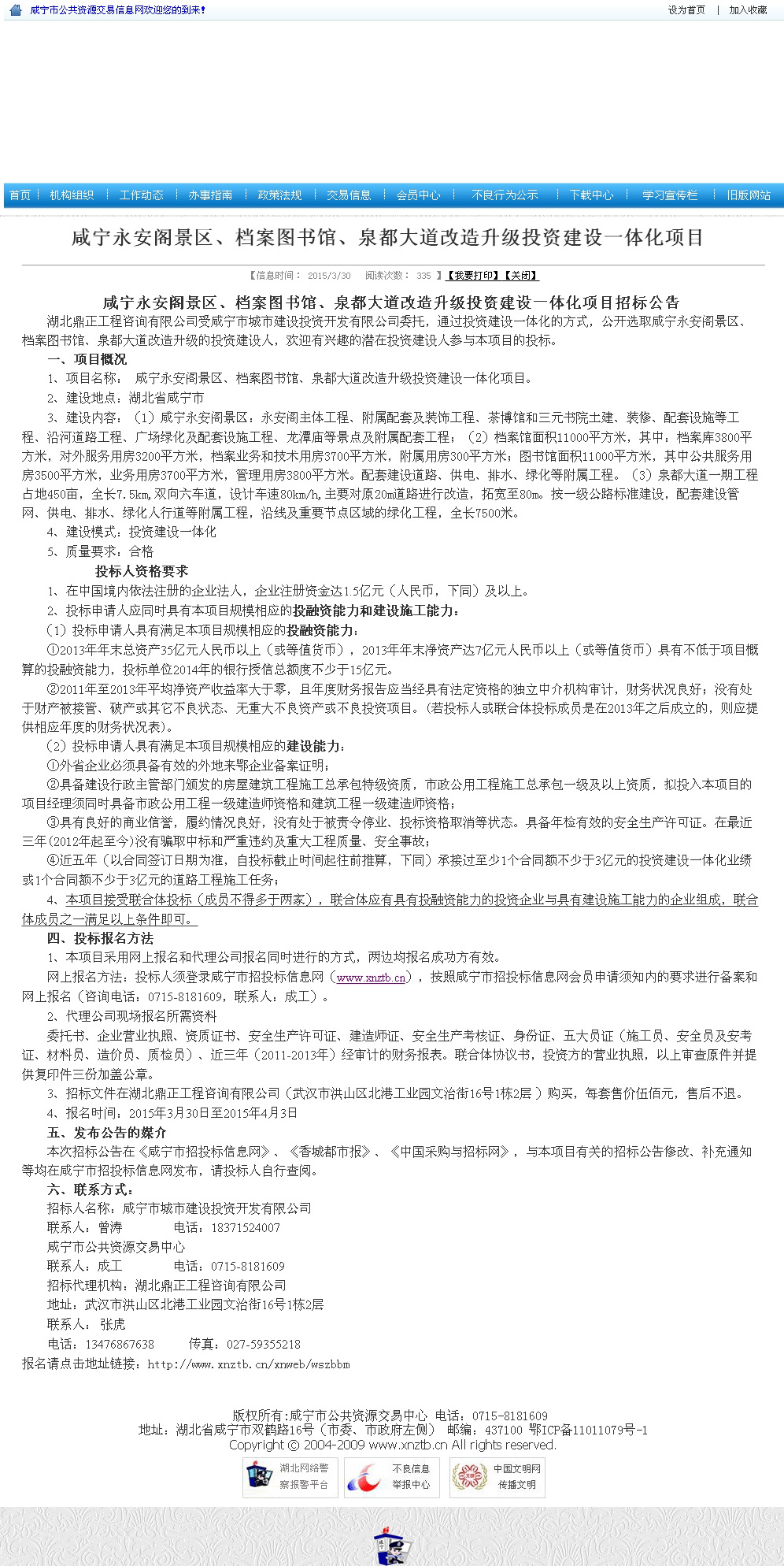 咸寧永安閣景區、檔案圖書館、泉都大道改造升級投資建設一體化項目