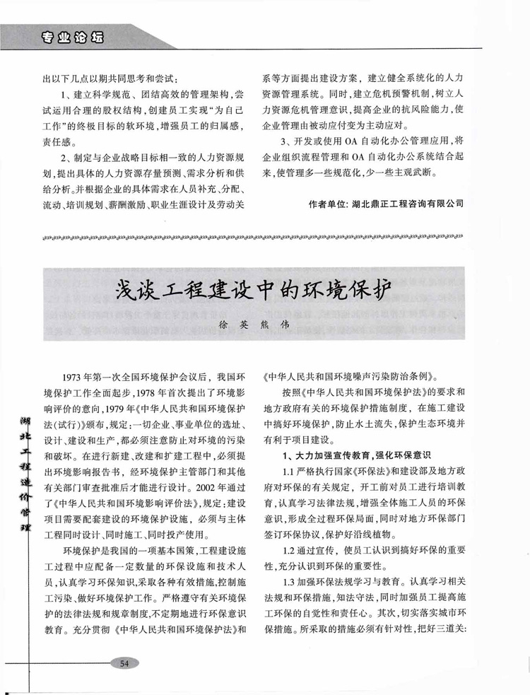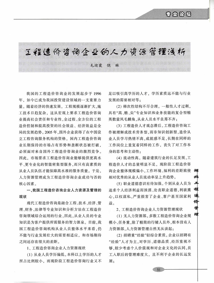 熱烈祝賀我公司員工所著文章《工程造價咨詢企業的人力資源管理淺析》在《湖北工程造價管理》雜志