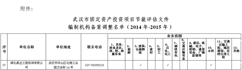 我公司入選武漢市固定資產投資項目節能評估文件編制機構名單