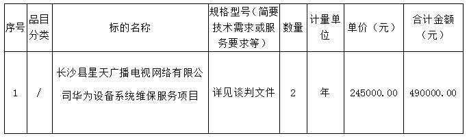 長沙縣星天廣播電視網絡有限公司華為設備系統維保服務項目 競爭性談判公告