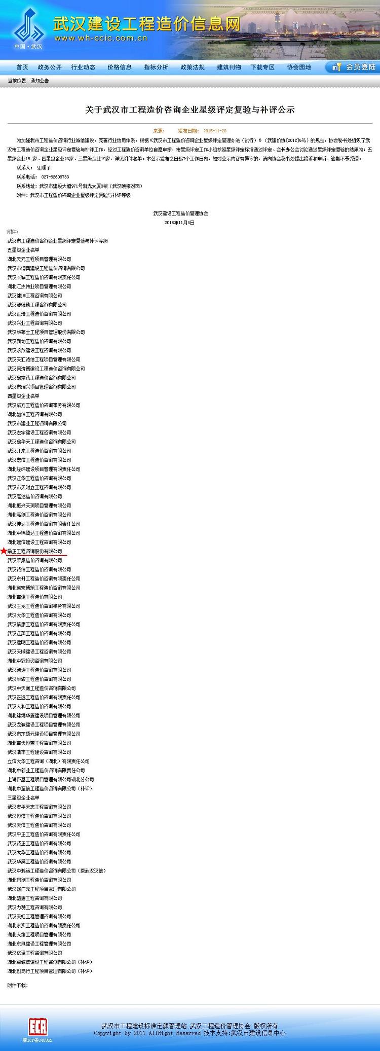 我司獲武漢市工程造價(jià)咨詢企業(yè)星級(jí)評(píng)定四星級(jí)企業(yè)稱號(hào)