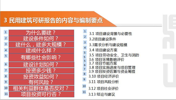 上午,來自工程咨詢一部的余國秋做了《民用建筑可行性研究報告編制要點與實務》的主題分享。余國秋從可行性研究基本認識、民用建筑可行性研究報告編制要點、可行性研究實務三個方面展開,重點闡述了做可行性研究報告的必要性,怎么做可行性研究報告。